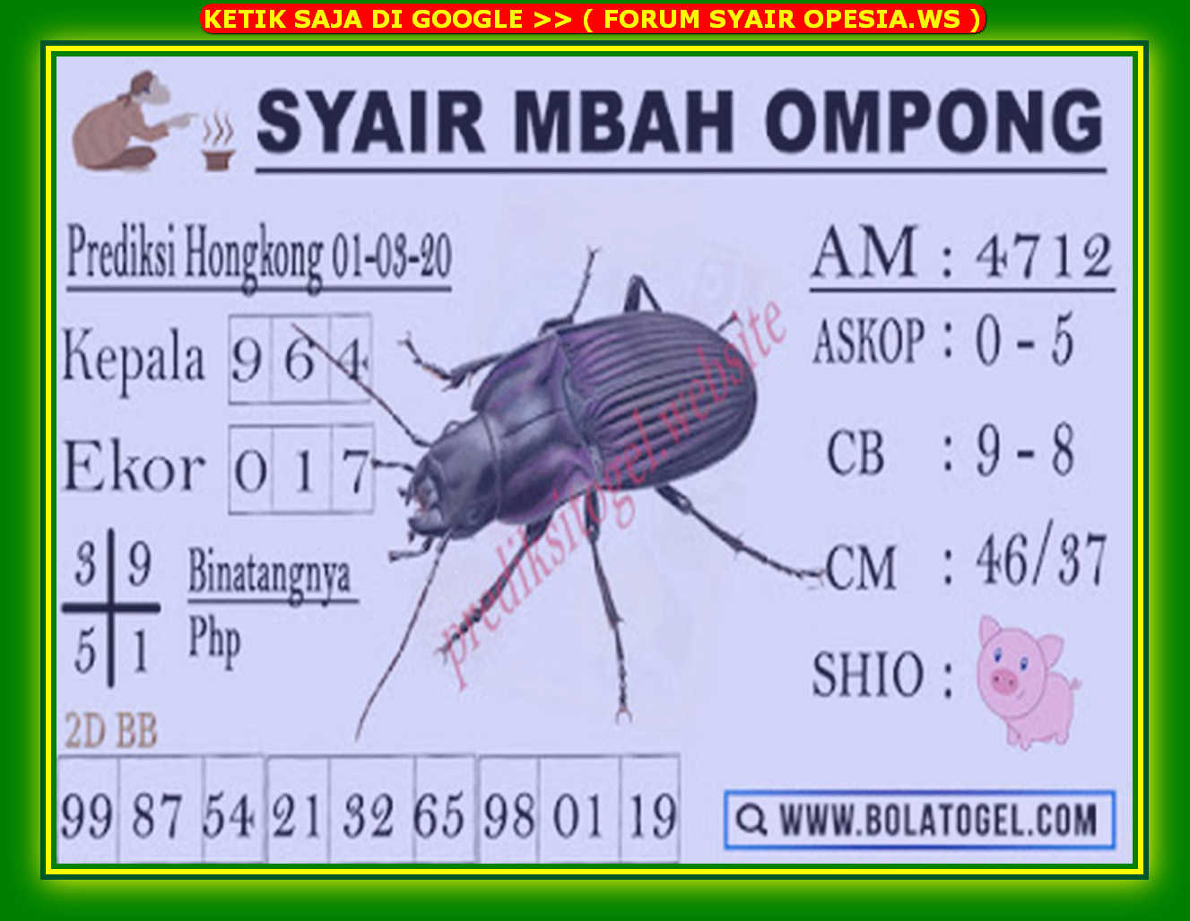 Syair hk 1 Maret 2020 Live Syair TOTO